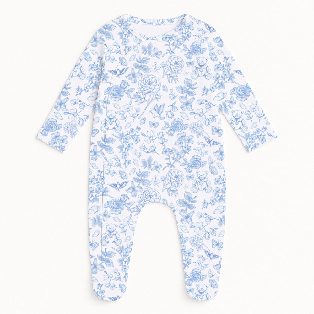 Designed with an all-over charming print and front popper fastenings for easy changing and dressing.