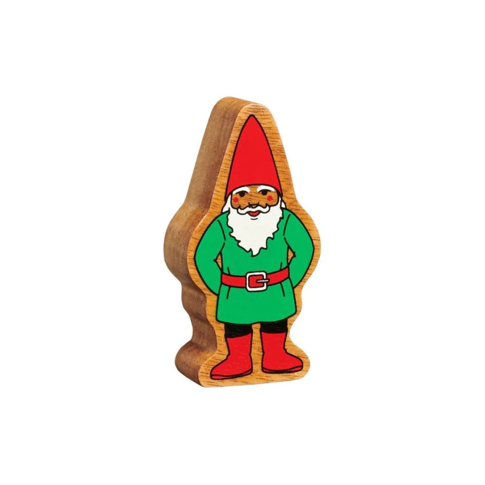 This colourful natural wood gnome figure has a green and red design with a beautiful wood grain edge - each one is unique! Add this friendly gnome to any children's toy collection for hours of play at a pocket money price.