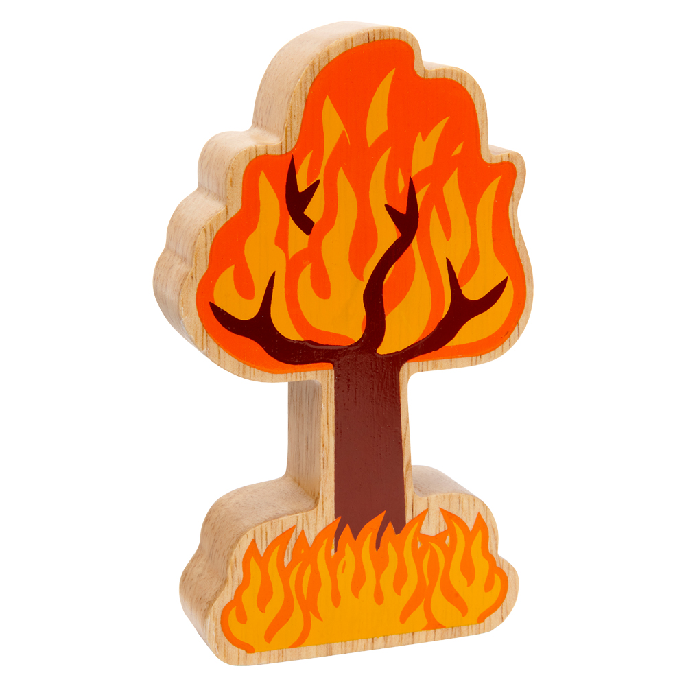 This colourful natural wood tree on fire has a green design on one side and a fiery orange design on the other, with a beautiful wood grain edge - each one is unique! Add this accessory to any children's toy collection for hours of play at a pocket money price.