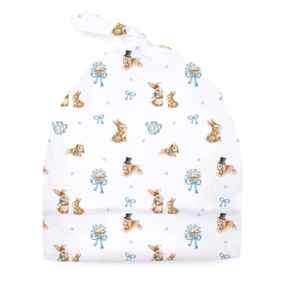Hat with a knot made of soft Pima Cotton with a designer print. Soft internal seams.