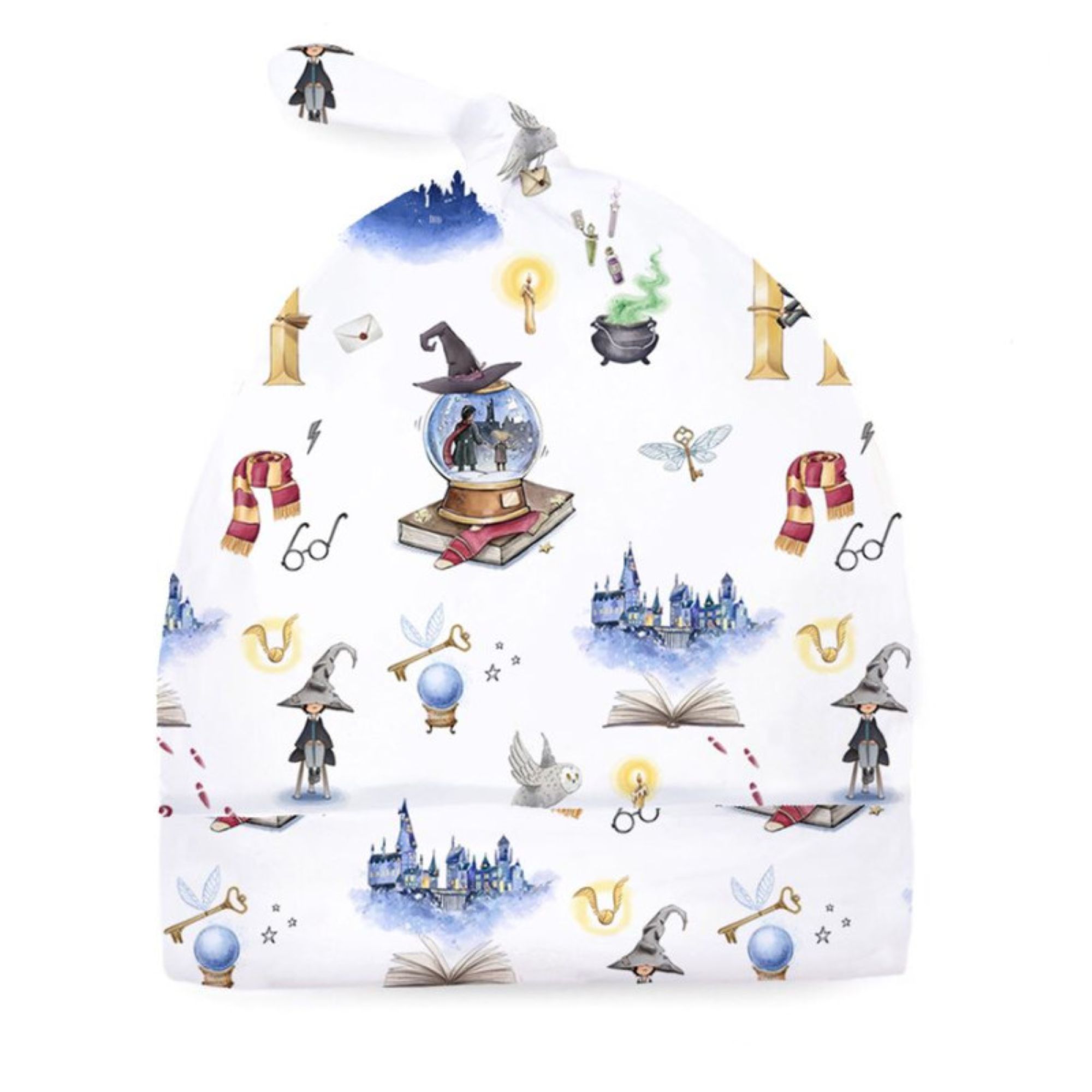 Hat with a knot made of soft Pima Cotton with a designer print. Soft internal seams.