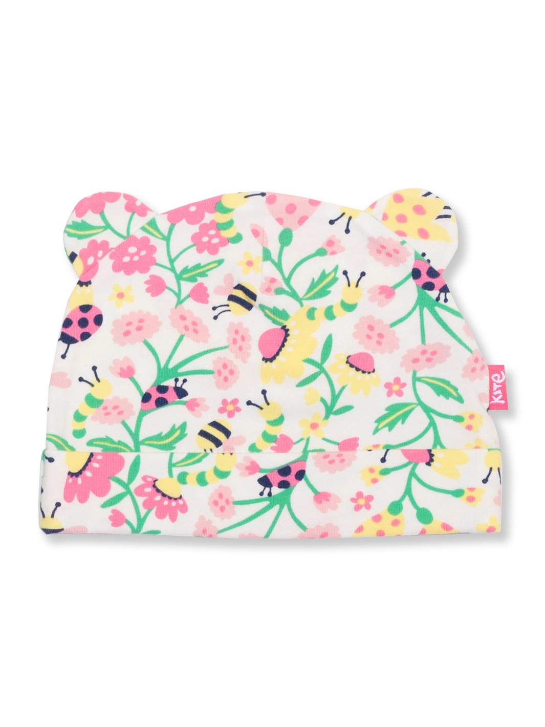 The perfect organic cotton hat to keep your little one snug and cosy. Featuring our gorgeous love nature print with a turn-up and cute ears. Complete the look with the matching range for an adorable outfit this season.