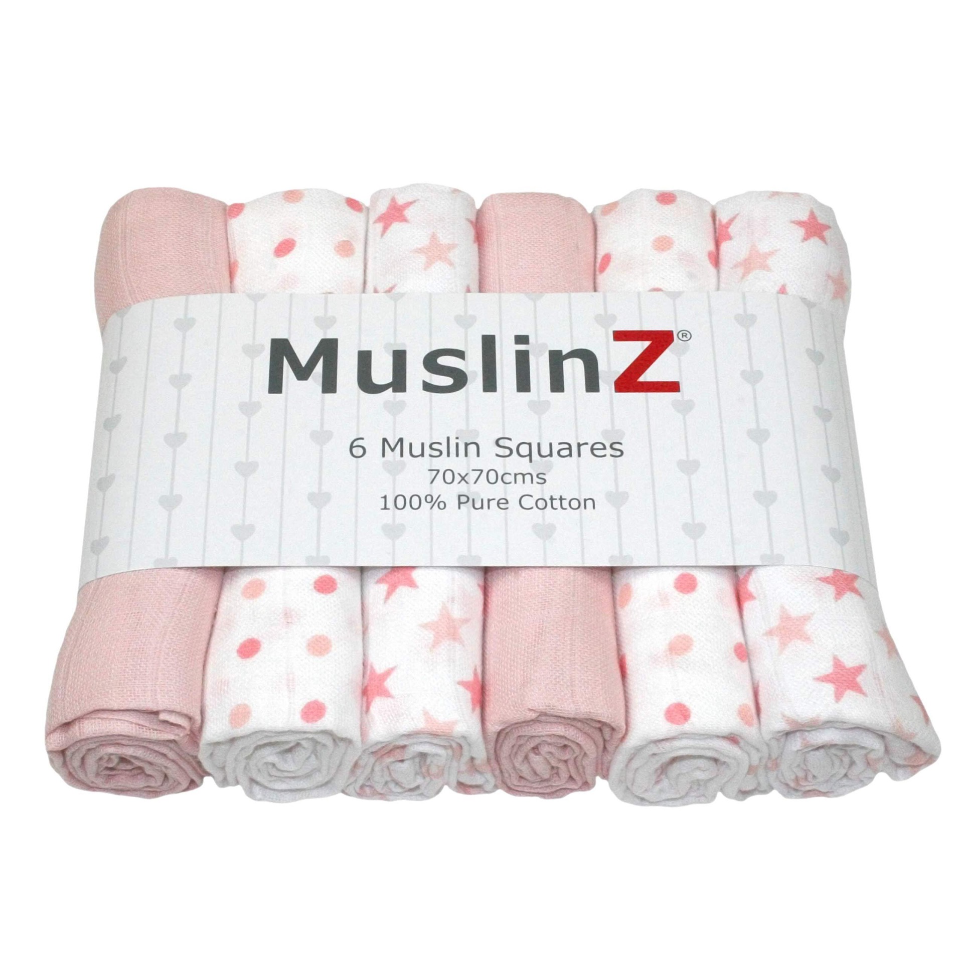 Muslinz 6pk Muslin Squares 70x70cm – Pink Star