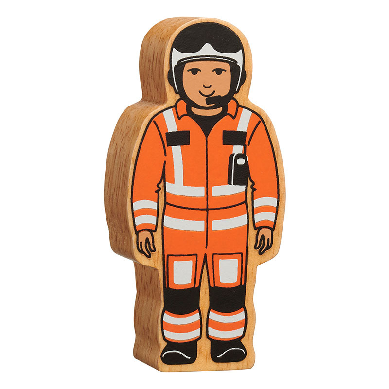 An air rescue figure in orange and printed on both sides. Made in eco-friendly chunky 25mm thick wood for little hands to grip. All for a pocket money price!