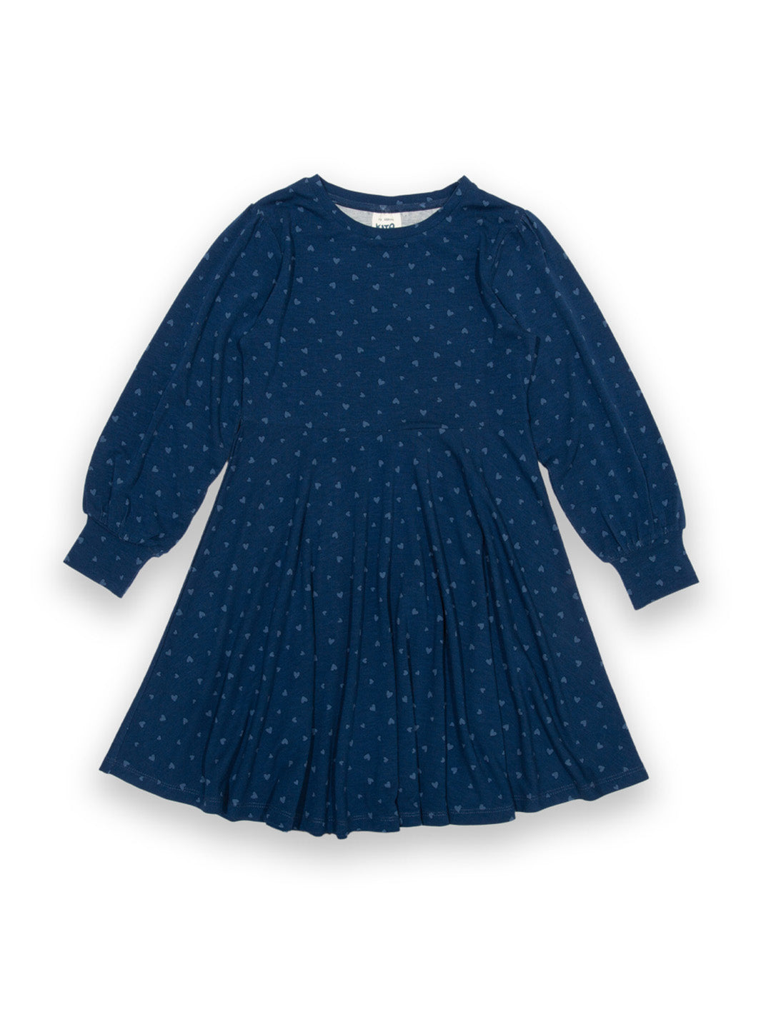 Introducing our new eco-responsible fabric for childrenswear, made from certified renewable wood sources, this beautiful dress feels as good as it looks. Our whirling, twirling number is super comfy and so stylish in our little hearts print with cuffed sleeves. Made in our LENZING™ ECOVERO™ viscose with a little bit of stretch for great drape, softness and fit. Discover sustainable comfort and style for your little one.