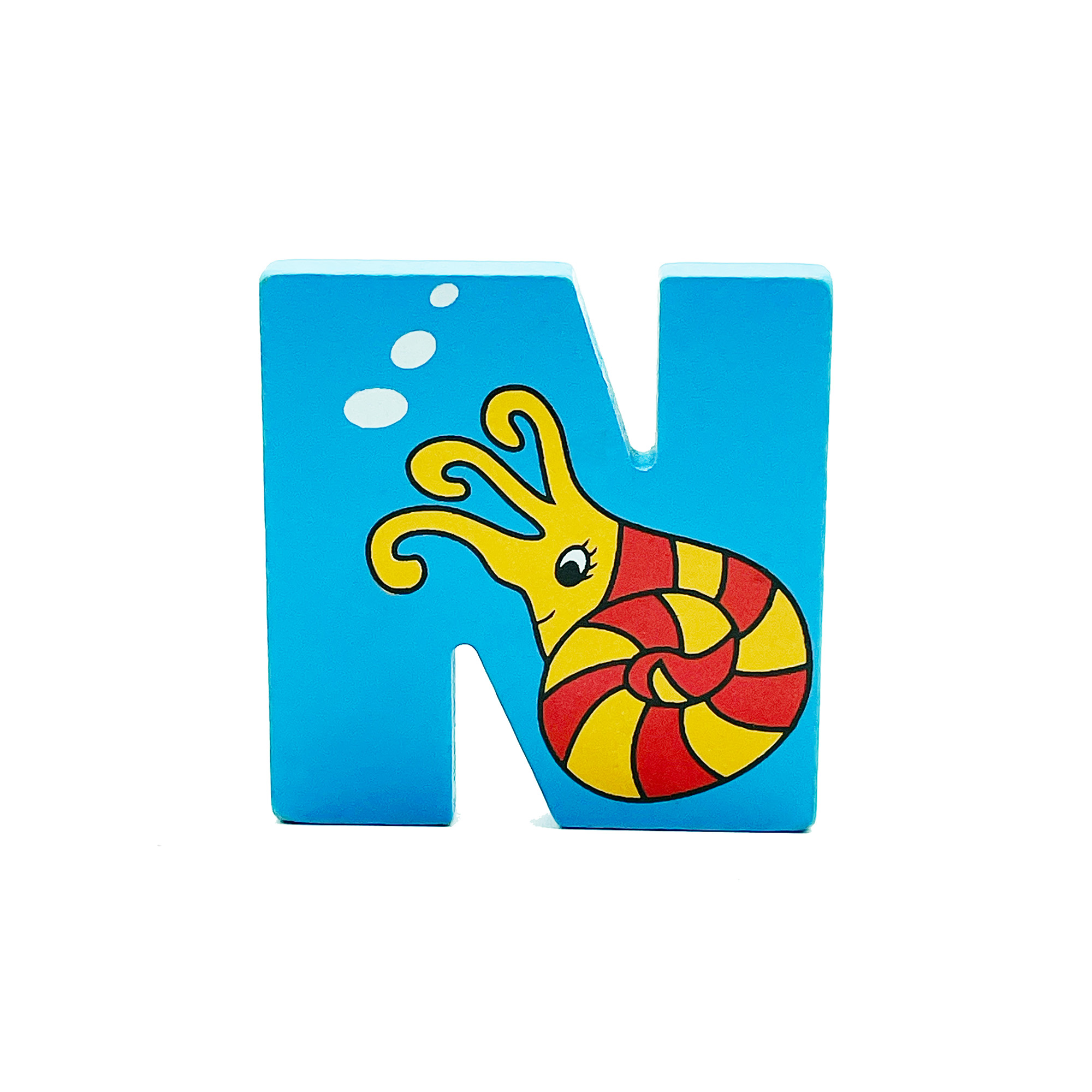 Beautiful handcrafted wooden alphabet letter; perfect for any nursery. N is Nautilus