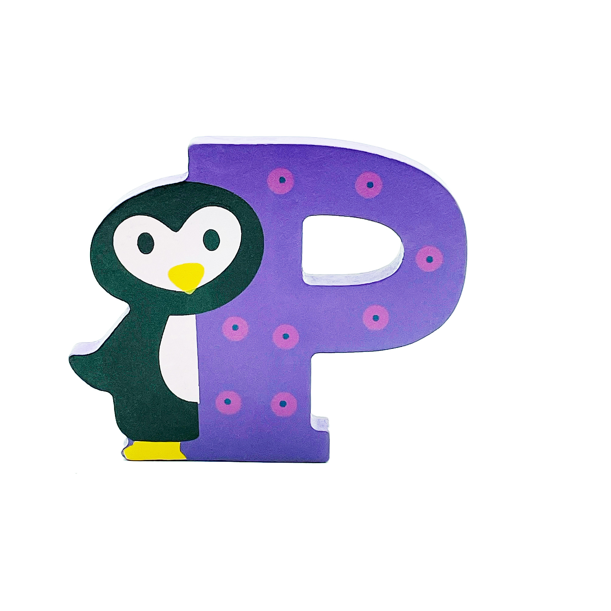 Beautiful handcrafted wooden alphabet letter; perfect for any nursery. P is for Penguin
