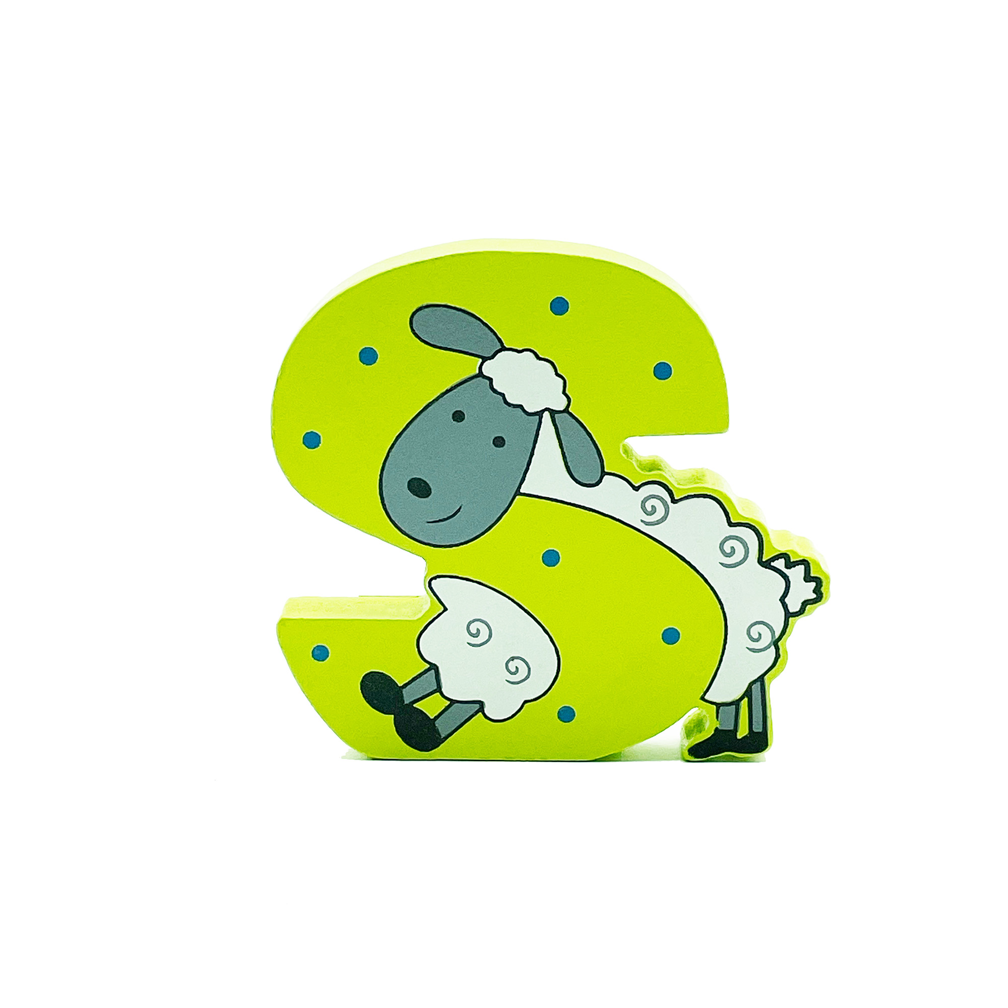 Beautiful handcrafted wooden alphabet letter; perfect for any nursery. S is for Sheep