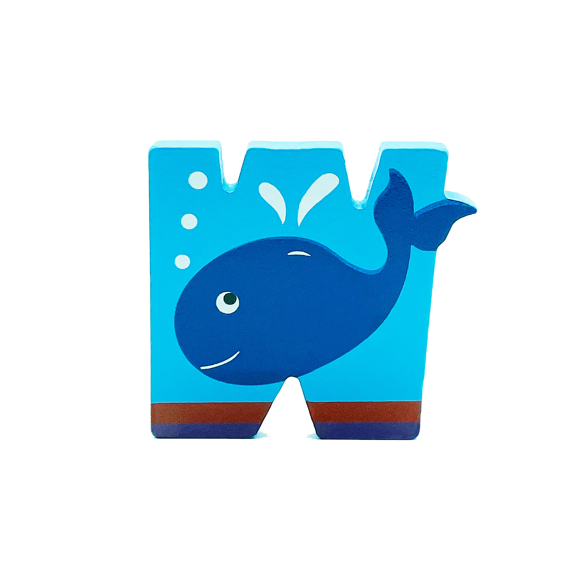 Beautiful handcrafted wooden alphabet letter; perfect for any nursery. W is for Whale