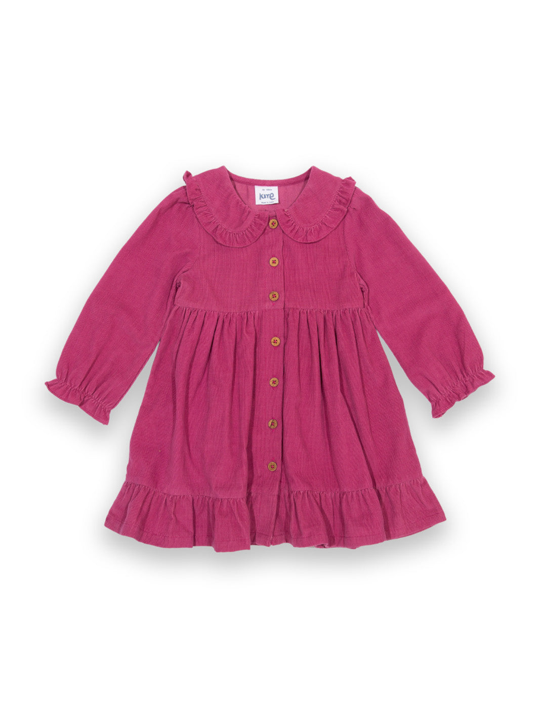 A special dress for a special occasion. Made from our soft, versatile corduroy, it features a frill hem skirt perfect for lots of twirling and swirling. In a pretty berry pink, this dress has a sweet dolly collar and elasticated cuffs for effortless, head-turning style. Made from 100% organic cotton.