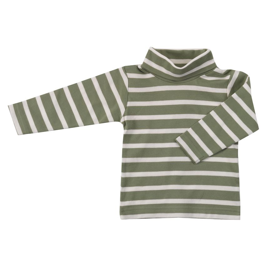 Polo Neck Top Breton Stripe Green from Pigeon Organics