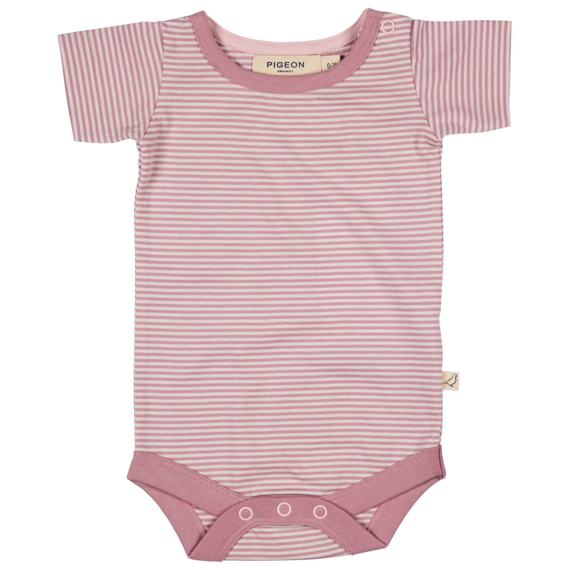 Printed body with short sleeves, no legs, and poppers at crotch for easy changing.