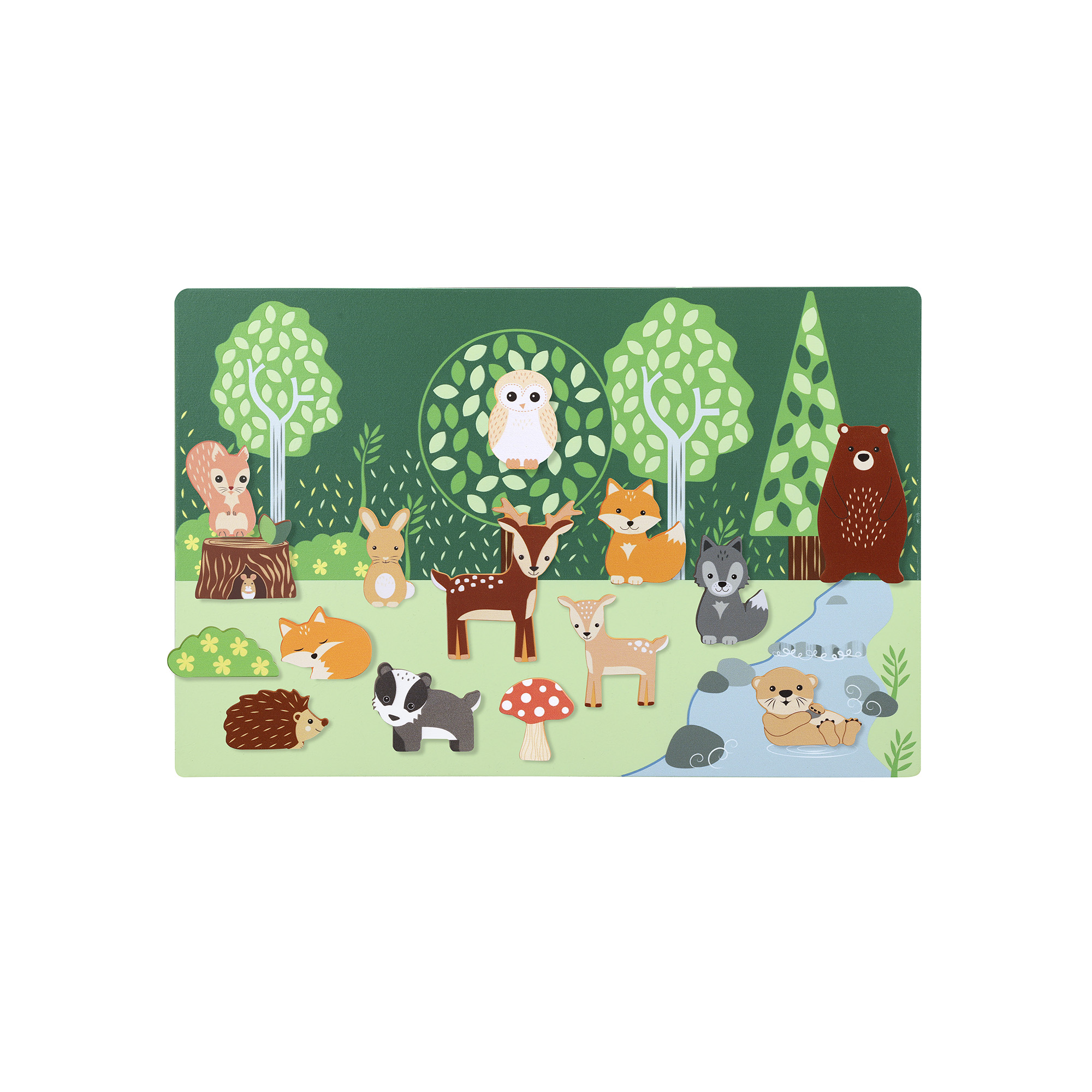 Place all the magnetic woodland animals onto the woodland scene, with endless combinations